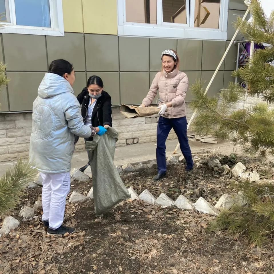 7 апреля 2022 года медицинские работники ГКП на ПХВ “Центр ПМСП” приняли активное участие в проведении чистого четверга, в рамках которого проведено мероприятие по санитарной очистке, благоустройству и озеленению прилегающей территории.