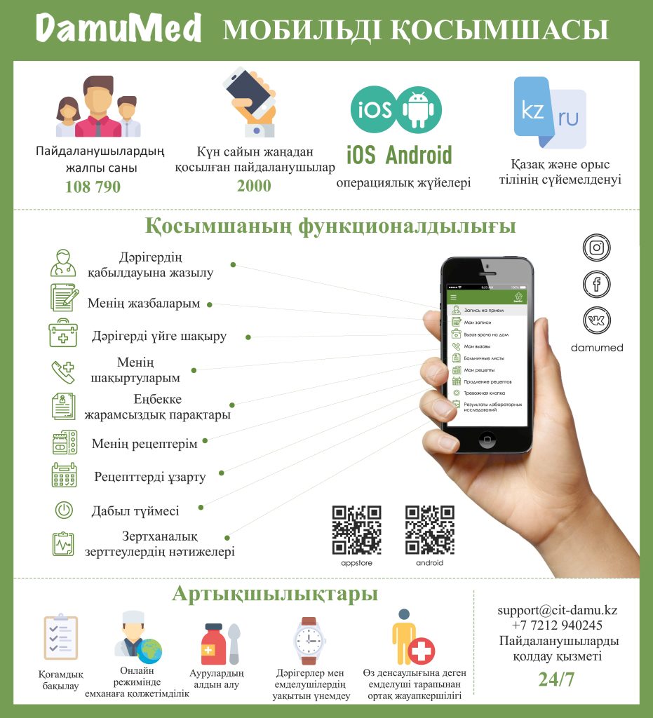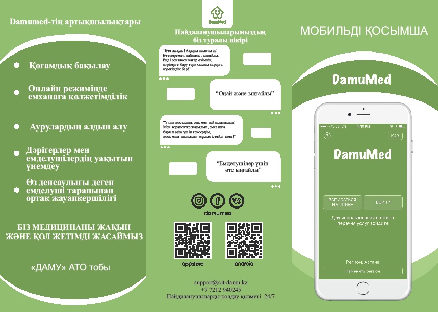 «DamuMed» қосымшасында келесі мүмкіндіктер бар: