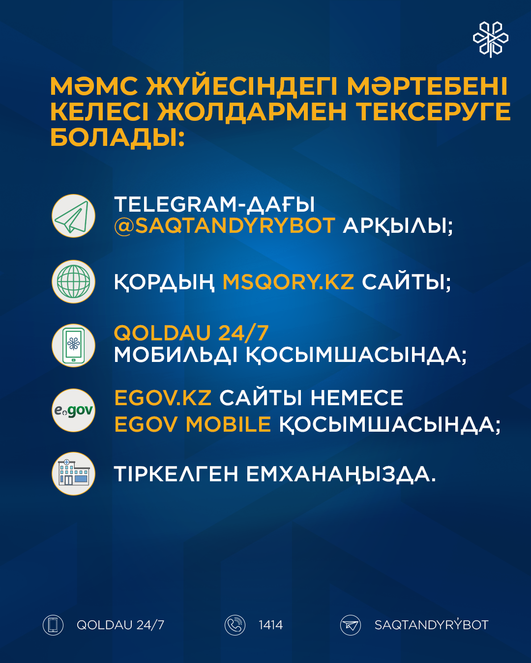 Бес жасқа дейінгі балалардың ата-аналарына, жүкті әйелдерге және ерекше есепте тұрған пациенттерге шұғыл режимде дәрігерді үйге шақыруға мүмкіндік береді.