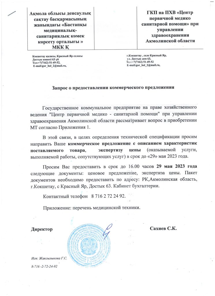ГКП на ПХВ "Центр Центр первичной медико — санитарной помощи" при управлении здравоохранения Акмолинской области