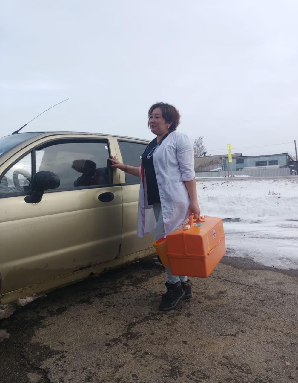 Айына 7-8 науқасты аламыз. Сосын бір жұма бойы оларды тексереміз. Қан қысымдарын өлшеп, инецияларын жасаймыз. Емханаға келмейтін, жүре алмайтын, 60 жастан асқан науқастарға көмек көрсетеміз.